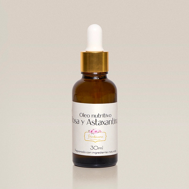 Descubre el secreto de la eterna juventud con nuestro óleo nutritivo. La rosa mosqueta y la astaxantina, poderosos aliados contra el envejecimiento, se combinan para rejuvenecer y proteger tu piel. Los aceites de jojoba, pepita de uva, sacha inchi y aguaje, ricos en vitaminas y nutrientes, hidratan profundamente y restauran la elasticidad natural de tu piel. Un verdadero tesoro para una piel radiante y joven.
